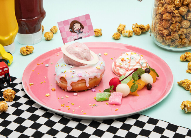 麗日お茶子の”個性”をイメージしたドーナツ。お茶子の必殺技をイメージしたアイスと白玉やぎゅうひを使用した、まるであんみつの様なドーナツプレートです。
