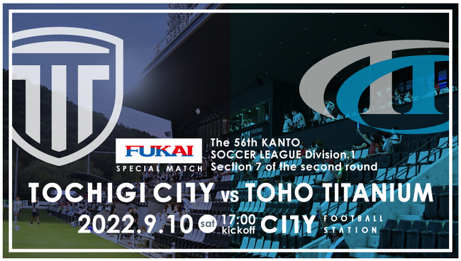 9月10日(土)「深井製作所スペシャルマッチ 栃木シティ vs 東邦チタニウム」のチケットは、8月27日(土)より発売を予定しています。