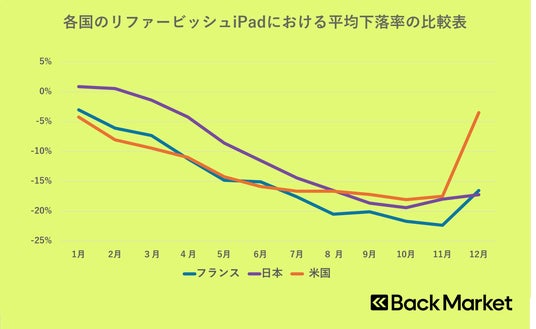 世界最大級のリファービッシュ電子機器に特化したマーケットプレイスであるBack Market Japan株式会社(本社:東京都渋谷区、以下、Back Market)は、本日、2025年1月1日から2025年12月31日の間に、日本、米国、フランスのBack Marketで取り扱っているリファービッシュのiPhoneおよびiPadの販売データをもとに作成した価格動向データを発表します。リファービッシュ品とは、中古品として回収された電子機器を専門家が検査・クリーニング・修理し、全ての機能で正常作動が確認されている整備済製品です。