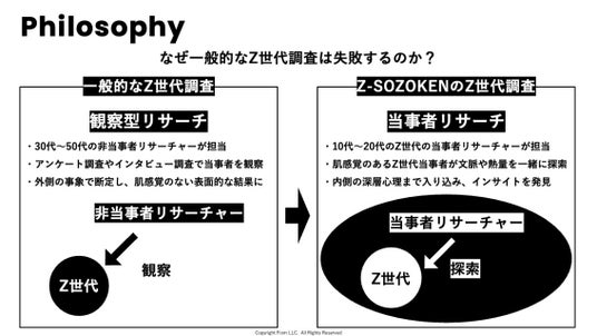 従来の調査は、30代~50代の非当事者リサーチャーが担当する「観察型リサーチ」に留まることがほとんどです。