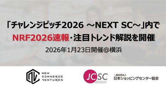 コマース・リテール領域のインダストリーベンチャーキャピタルNew Commerce Ventures株式会社(本社:東京都品川区、代表取締役:松山馨太・大久保洸平、以下「NCV」)は、一般社団法人日本ショッピングセンター協会と共催する「チャレンジピッチ2026 ~NEXT SC~」において、NRF2026(Retail’s Big Show)視察速報レポートに加え、NCVが注目する「2026年 コマーストレンド7選」を紹介するセッションの開催を決定しましたので、お知らせいたします。
