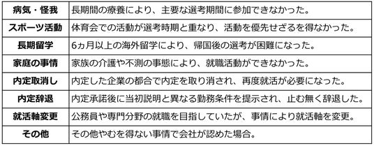 特別な事情(下表参照)により就職活動の期間を逃した2026年3月卒業見込みの大学・短期大学・専門学校生、および既卒3年以内の方
