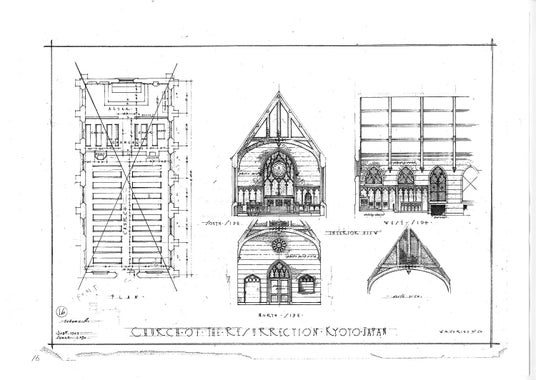 ・ヴォーリズ制作の京都復活教会設計図の複製図面