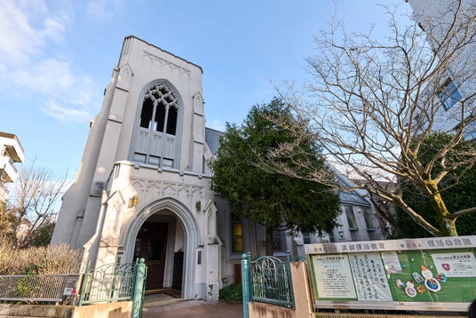 京都復活教会は1914年、英国国教会の流れをくむ教会として京都・西陣の大宮通元誓願寺上ルの地で「弘道館」として始まり、1921年に「京都復活教会」と改称して今日に至ります。1932年に北大路堀川角の現在地に移転し、1930年から西陣地区で始めていた幼児園を復活幼稚園として改めて開園しました。現在の建物が完成したのは1936年で、日本各地で教会や学校などの西洋建築を手がけたアメリカ出身の建築家ウィリアム・メレル・ヴォーリズが設計しました。2023年に京都市の「京都を彩る建物や庭園」に認定された教会建築で、毎週日曜の礼拝をはじめ、イースター(復活祭)やクリスマスの礼拝が行なわれています。復活幼稚園の礼拝堂としても、毎日子どもたちがお祈りを奉げています。