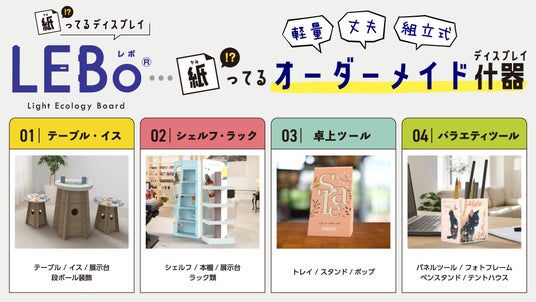 紙!?ってるディスプレイ【LEBo】は超軽量で抜群の耐久性を兼ね備えた紙製強化ボードで、