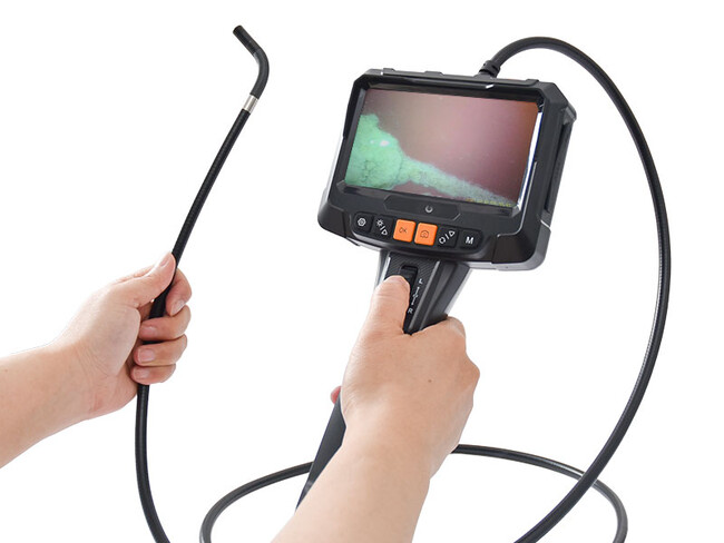 正面と側面にカメラを搭載し手元操作でスムーズに動く8mm径の工業用内視鏡