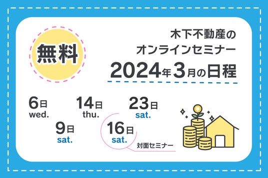 総合不動産事業を展開する株式会社 木下不動産(本社:東京都新宿区、代表取締役社長:坂本 建士)は、2024年3月複数のテーマで資産運用・不動産投資に関する無料セミナーを開催します。