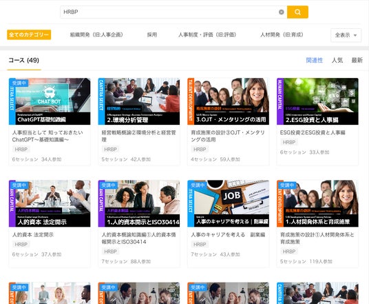 「HRBP」と検索をかけた際のコース一覧イメージ