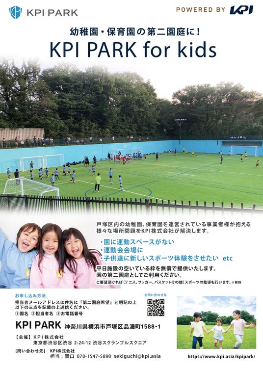 第二庭園として横浜市戸塚区のスポーツ施設KPI PARK(神奈川県横浜市戸塚区信濃町)を提供するサービスを2024年6月から受付を開始いたします。