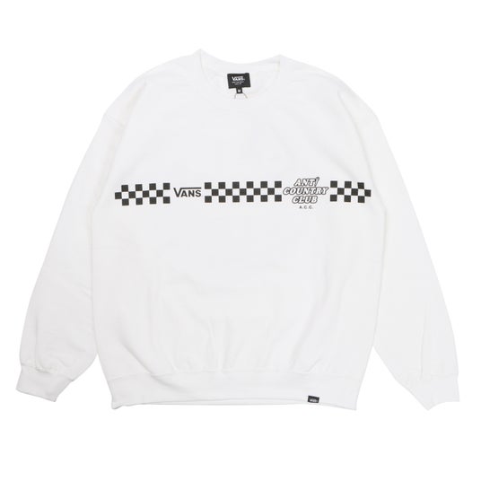 アパレルでは、VANSロゴやチェッカーボード柄と、ANTi COUNTRY CLUB TOKYOのロゴを組み合わせたグラフィックを、Tシャツとスウェットにプリントしました。