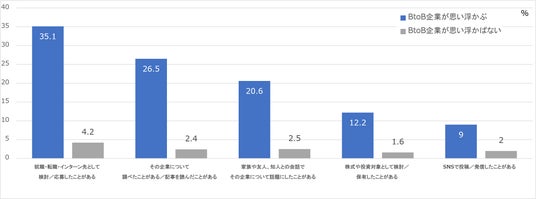 特定のBtoB企業名を思い浮かべられた層の多くは、企業に対して能動的行動をとった経験があった。