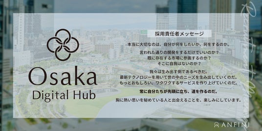 株式会社Anfini(本社:東京都港区、代表取締役:橋本 純)は、今年5月に新設したOsaka Digital Hubにて、大学生・大学院生を対象としたサマーインターンシップを開催いたします。