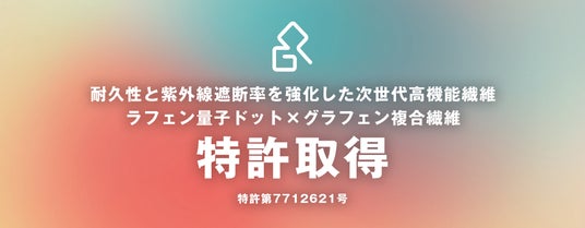本特許においては、グラフェン量子ドット単体と比較して耐久性を大きく向上させるとともに、紫外線遮断率を1.5倍以上高めることに成功いたしました。この複合繊維はグラフェン量子ドットの基盤特許技術を活用し、特定機能の強化を行うことを目的として開発した複合繊維の第1弾となります。
