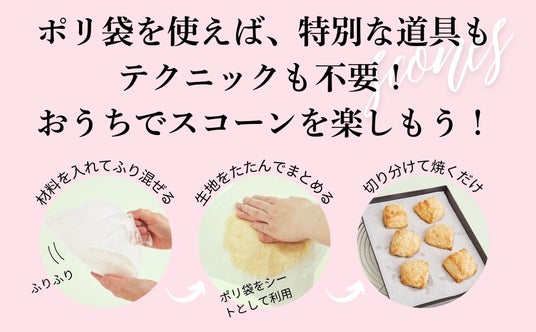 アフタヌーンティーの広がりや、新しい味わい・見た目のスコーンの登場で、今、再びスコーンに注目が集まっています。ポリ袋を使った簡単レシピで、おうちで焼き立てスコーンを楽しめる本ができました。