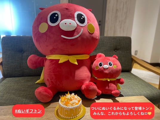 「でかギフトン」と「ちびギフトン」の2匹が登場し、SNS投稿での活用に加えて企業イベントや採用シーンでのフォトスポットなど、リアルな場面でも存在感を発揮していきます。
