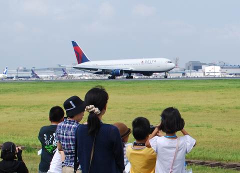 この企画は、普段なかなか入ることができない滑走路の脇で、航空機の離着陸を間近に見たり、海外からの入国手続きなどを擬似体験できるチャンス!今回は、初めてデルタ航空の格納庫で整備している航空機を見ることができます!