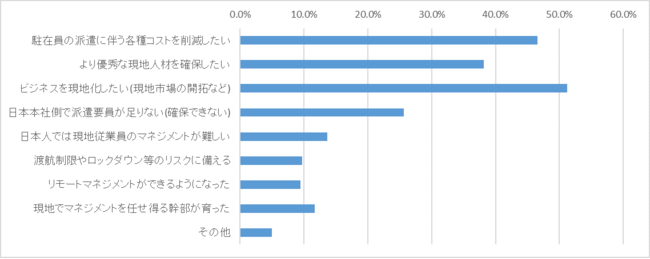 コロナ禍は、経営の現地化の主要な理由とは言えないが、現地化を進める大きなきっかけの一つとなっている。