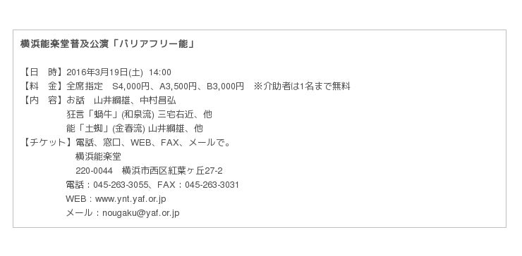 今年15回目を迎える横浜能楽堂「バリアフリー能」。大臣表彰優良賞を受賞