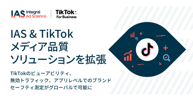 デジタルメディア品質分野のグローバルリーダーであるIntegral Ad Science(ナスダック:IAS、本社:米国ニューヨーク、CEO:リサ・アッツシュナイダー / 日本オフィス:東京都千代田区、日本カントリーマネージャー:山口武、以下 IAS)は本日、TikTokとのパートナーシップにおけるサービスの拡張を発表しました。ビューアビリティ、無効トラフィック(IVT)、アプリレベルのブランドセーフティを測定できるようになり、世界中のブランド広告主や代理店がTikTokのプラットフォームで購入するメディアの品質を効果的に監視できるようになります。