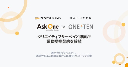 「顧客の声を機会に変える」をミッションに、あらゆる顧客接点で営業機会を逃さないマルチチャネルフォーム「Ask One」を提供するクリエイティブサーベイ株式会社(以下クリエイティブサーベイ)は、イベントを中心に企業や団体の体験型マーケティング活動を支援し、展示会においては大規模ブースから小規模ブースに特化した「パケテン」、「ONE±TEN」を提供する株式会社 博展(以下「博展」)と業務提携契約を締結したことを発表いたします。