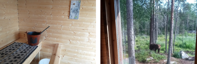 紀元前1500年から2500年の岩絵で知られる北部の村ホッサには、大自然の中にひっそりとたたずむ新しいサウナがあります。心地よい熱さに包まれながら窓からクマや野生動物を観察することができます。