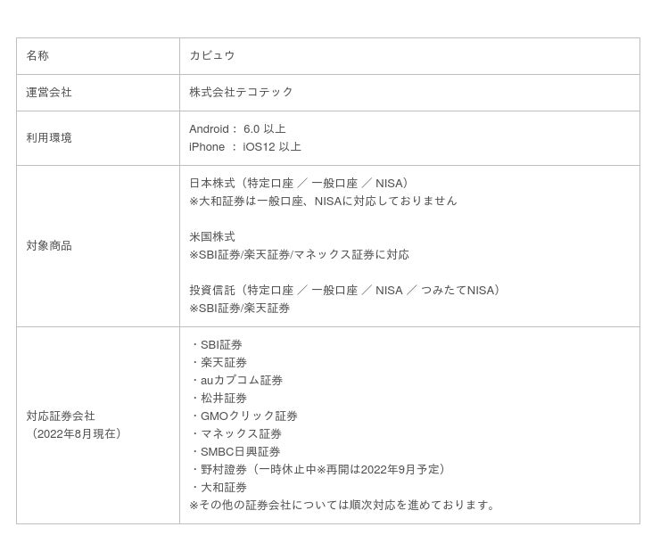 ご利用中の証券口座のログインIDをカビュウに登録しておくことで、毎日自動で株式の売買履歴や資産推移を可視化できるサービスです。複数の証券口座を一括管理して記録分析を行うこともできます。