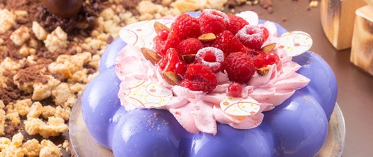 怪しげな青い花のような「サファイアブルーム」は、不思議な妖精の世界を思わせる色合いが目を引きます。マスカルポーネムースにストロベリーとハイビスカスの香り、ラズベリークリームを組み合わせた、酸味とクリーミーさのバランスが絶妙な一品です。