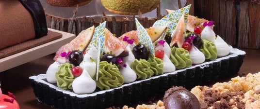 「森の恵みと小鳥のさえずり」は、たっぷりのイチジク、チェリーをのせたタルトで、ピスタチオとバニラ2種のクリームのハーモニーをお楽しみください。