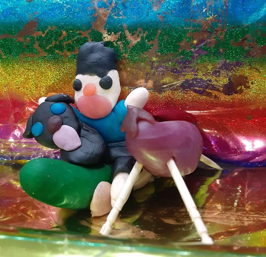 はるきちくんの大好きだった犬の輝羅(きら)くんにまた会いたいという想いが作品から伝わってきます。茄子の牛とキュウリの馬に乗った、はるきちくんも輝羅くんも満面の笑顔ですね。背景も天の川みたいでとっても素敵です。
