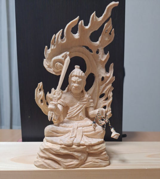 なんと頼もしい不動明王でしょう。その表情までをも彫り込めていることに大変驚きました。根気強い細やかな彫刻刀の制作ぶりからは、おじいさまとおばあさまへの思いを感じます。このご家族の日頃からの繋がりを感じますね。