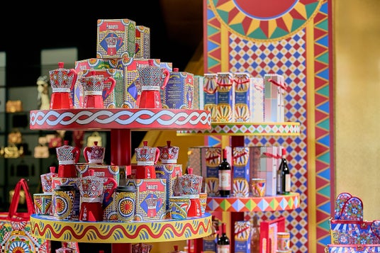 このホリデー マーケットでは、ドルチェ&ガッバーナとのコラボレーションアイテムである、フィアスコナーロ(Fiasconaro)のパネットーネ(イタリアの伝統的な発酵菓子パン)、パネットーネにぴったりのクリーム、そしてドンナフガータ(Donnafugata)のワインをブティックにて特別に販売します。パッケージ、ラベル、ボックスにはそれぞれシチリア島の豊かな自然の美しさを想起させる色鮮やかなデザインが施されております。