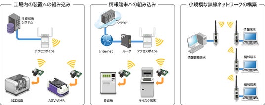 新製品は、移動する装置が多い物流センターや様々な機械の操作端末など取り付けスペースが限られた装置において、低消費電力性や高信頼性が求められる環境での無線通信環境の構築に適しています。