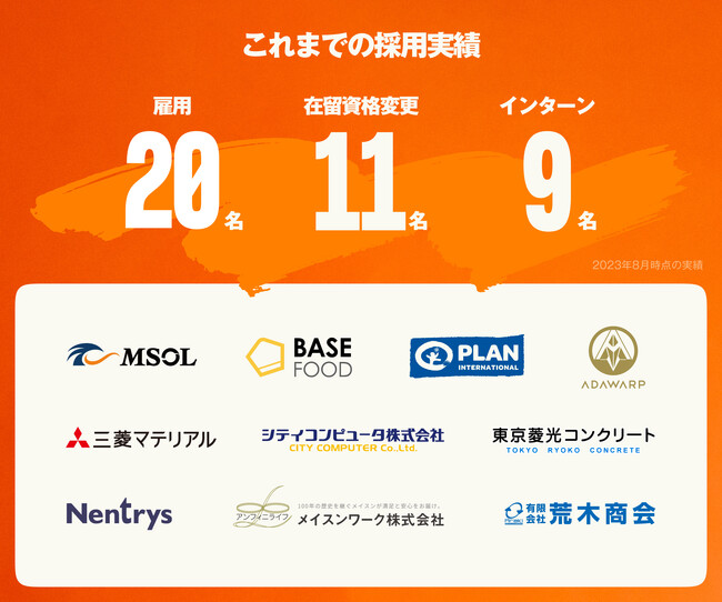 NPO法人WELgeeが運営する、難民人材と日本企業をつなぐキャリアコーディネーションサービスです。専任のキャリアコーディネーターが企業様に伴走し、活躍できるポジションの策定、難民人材の紹介、長期の定着支援まで一気通貫で行います。これまでに20名以上の難民人材が企業で活躍しており、10名未満のスタートアップから5,000名以上の大手上場企業、医療メーカーからコンサルティング企業まで、多種多様な業界や企業規模で難民活躍を実現。また、採用を通じた在留資格変更数は2桁を超えました。
