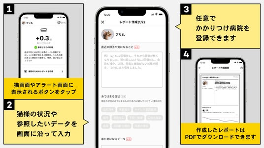■動物病院に通院する際にも、Catlogのデータをレポートに!より詳しく正確に猫様のようすを伝えられます
