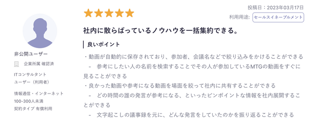 ※ ITreview カテゴリーレポート 「セールスイネーブルメント部門」(2023 Spring)