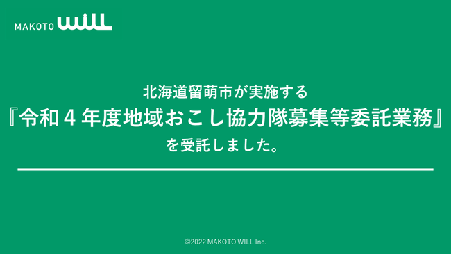 株式会社MAKOTO WILL(本社:宮城県仙台市、代表取締役 菅野永)は、「令和4年度地域おこし協力隊募集等委託業務」に係る委託先として採択されたことをお知らせします。