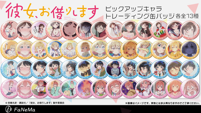 システムサービス株式会社(本社:東京都豊島区、代表取締役社長:田村宗弘)は、アニメ・マンガ・ゲーム作品等のキャラクター商品の企画・製作・販売をする自社ECサイト「FaNeMa」(URL:https://fanema.jp/)にて、TVアニメ『彼女、お借りします』より「ピックアップキャラトレーディング缶バッジ」を発売いたします。さらに、新商品発売を記念したTwitterフォロー&リツイートキャンペーンも実施いたします。
