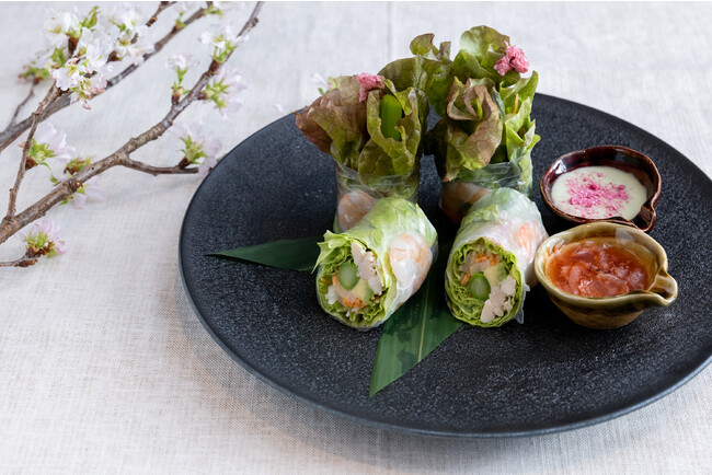 「桜咲く“匠の大山鶏”と春野菜の生春巻き」