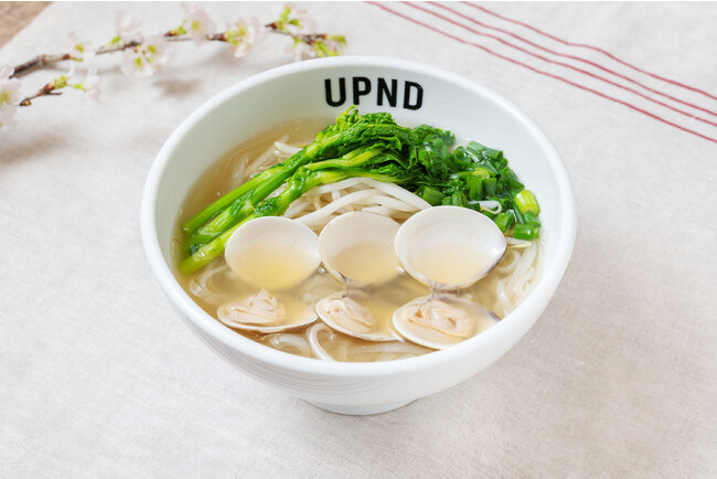 旬の食材、はまぐりと菜の花を使ったオリジナルフォーで春をスタート。はまぐりは、アミノ酸を多く含み、味に深みとコクをプラス。さらに菜の花は、ビタミンやミネラル、食物繊維が豊富に含まれている栄養価の高い野菜です。味わい、栄養価ともに相性抜群の食材をふんだんに取り入れた一杯です。