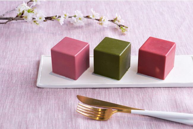 見た目もかわいい5センチ×5センチのキューブ型ケーキは、定番のルビーカカオと抹茶、期間限定のストロベリーライチを合わせた計3種類のフレーバーで展開。レアチーズとベリーソースを包んだルビーカカオ、抹茶と黒糖のムースを包んだ和スイーツ風の抹茶、期間限定のいちごチョコレートでピスタチオとライチのムースを包んだストロベリーライチが注目フレーバーです。店内、テイクアウトともにお楽しみいただけます。
