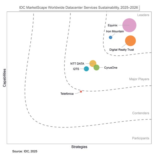 詳細は、IDC MarketScapeレポートの抜粋をご覧ください:IDC MarketScape: Worldwide Datacenter Services Sustainability 2025-2026 Vendor Assessment.