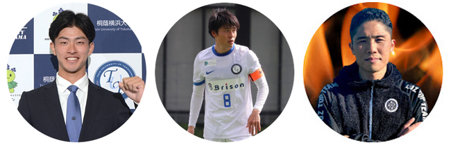写真:左から古謝 樹選手(楽天ゴールデンイーグルスドラフト1位指名)、山内 日向汰選手(川崎フロンターレ加入内定)、しょうごBOSS氏(サッカー最強ディフェンダー)