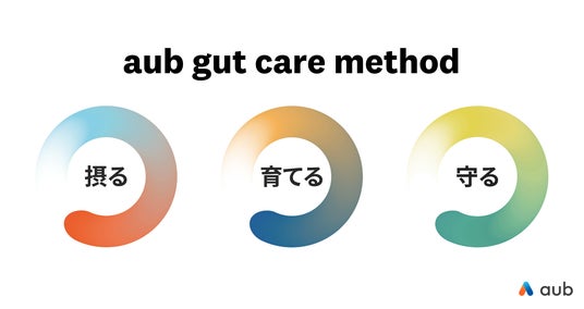 aubの考える腸活とは、「多様性の高い腸内環境」をつくり、ケアすることです。たくさんの菌を自身のお腹で飼い育てること、それが人々の健康に土台づくりに重要なことです。そのためには、多種多様な菌を摂り、菌を育て、そして菌を守る、という3つのアプローチが重要です。わたしたちは、研究成果に基づいた独自の腸活法「aub gut care method(菌を摂る・育てる・守る)」により、さまざまなソリューションを提供していきます。