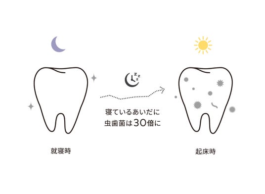 口腔内の悪玉菌は、就寝中に増殖します。そのため朝、歯磨きの前に水や食事を摂ると、悪玉菌を身体に入れてしまうことになり、腸内環境を乱す可能性が高まります。口の渇きからつい飲みがちな「目覚めの水」には注意が必要です。aubでは「腸内細菌を守る」ために「目覚めの歯磨き」を推奨しています。起床後、まずは歯に付着した「悪玉菌」や「歯垢(虫歯や歯周病の原因)」をブラッシングで除去することが、「口腸相関」を意識した口腔ケアにおいて重要です。