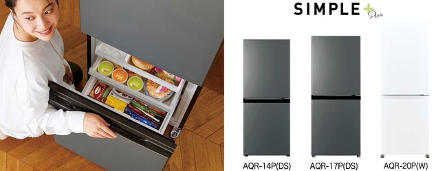 2ドア冷凍冷蔵庫「SIMPLE+ シリーズ」(品番:AQR-14P・AQR-20P/以下、本商品)は、単身者向け住宅のキッチンに置きやすいコンパクトさながら、より多くの食品を収納できるよう、本体サイズに対して1クラス上の容量を実現しました。AQUAは、本商品のゆとりある収納力と使いやすさで、一人暮らしの方の豊かな食生活をサポートいたします。