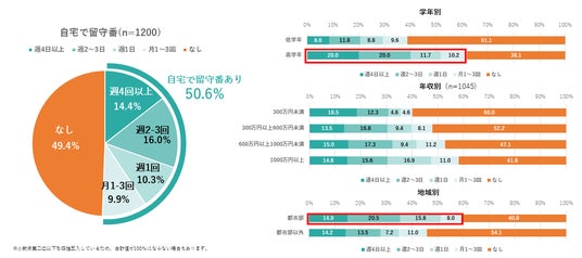 今回の調査における就労家庭の小学生は、長期休みに自宅で留守番をして過ごしている割合が全体で50.6%、高学年では61.9%となり、頻度も多くなる結果となりました。