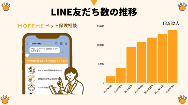 2022年2月よりMOFFME限定で申し込める「フリーペットほけんミニ(MOFFME 限定プラン)」(※)の販売を開始し、想定より多くの方にご加入いただいております。