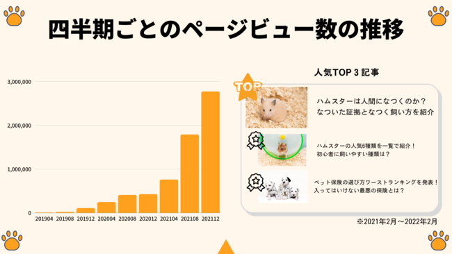 ウェブページにおいても高水準での成長を達成しており、毎月ページビュー数を伸ばすことに成功しております。