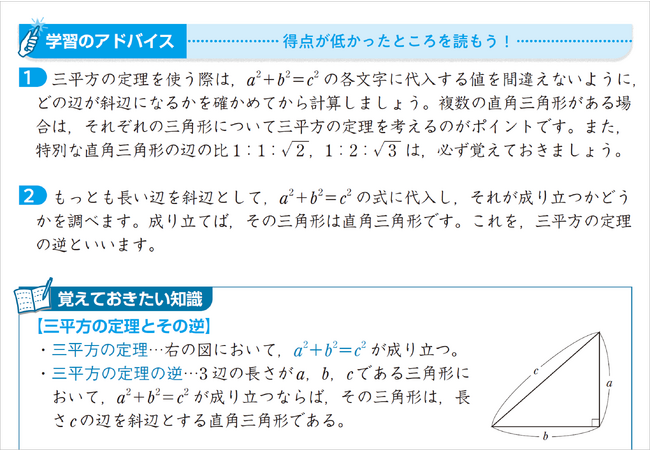 ↑数学の別冊解答。「学習のアドバイス」や「覚えておきたい知識」が理解を助けます。