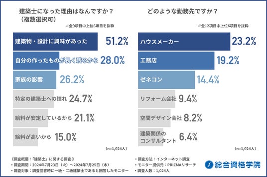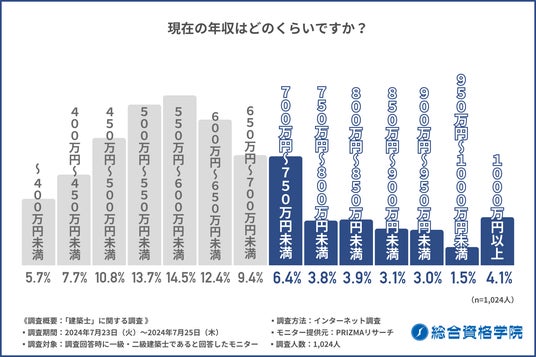 建設・不動産関連の資格取得スクール「総合資格学院」を運営する株式会社総合資格(本社:東京都新宿区、代表取締役:岸 和子)は、全国の建築士を対象に、「建築士の資格取得や年収」に関する実態調査を実施しました。